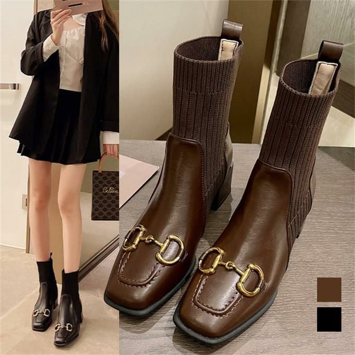 ソックス ショートブーツ スクエアヒール デザイン 低めヒール ソックス ショートブーツ スクエアヒール デザイン 低めヒール らくちん 歩きやすい 美脚魅せ シンプル きれいめ カジュアル ガーリー レディース お洒落 春夏 韓国ファッション【k3-bjd012】【予約販売:15-20日】【送料無料】宅込