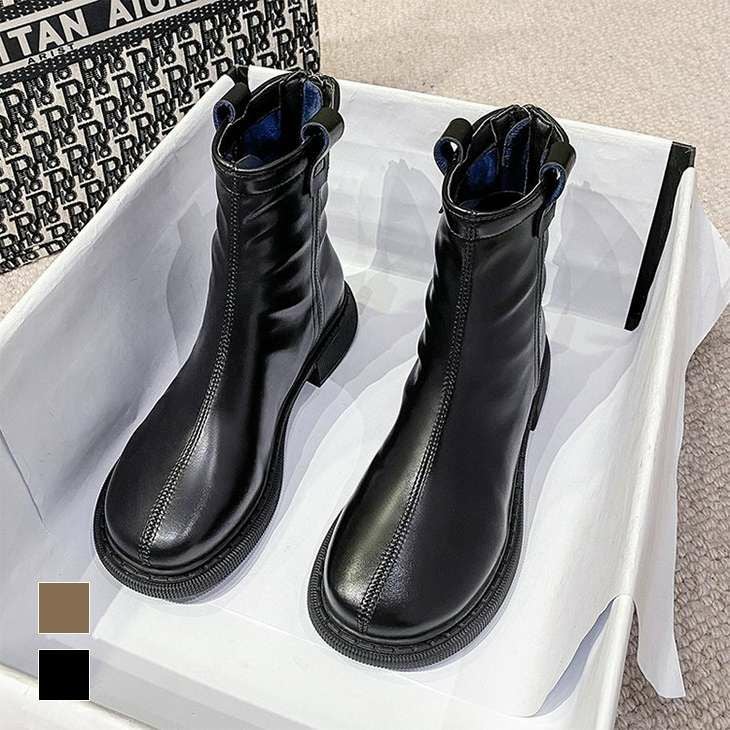 ボリューム ラウンドトゥ ショート ブーツ バックジッパー ボリューム ラウンドトゥ ショート ブーツ バックジッパー フェイクレザー 低めヒール らくちん 歩きやすい シンプル きれいめ カジュアル ガーリー メンズライク レディース お洒落 春夏 韓国ファッション【k3-fl990】【予約販売:15-20日】【送料無料】宅込