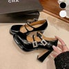 太めヒール ベルト付 パンプス PU サンダル [AMELY by La-gemme]太めヒール ベルト付 パンプス PU サンダル 厚底 きれいめ チャンキーヒール ラウンドトゥ ハイヒール 美脚 ガーリー シンプル お洒落 レディース 大人 韓国ファッション【k3-fy62546】【即納:1-5営業日】【送料無料】60込