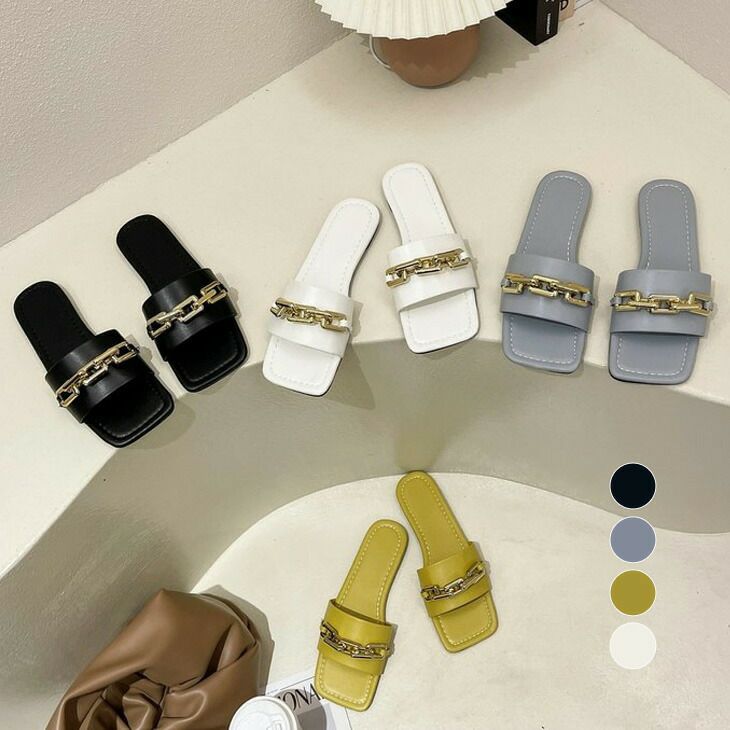 ミュール サンダル レディース おしゃれ 可愛い スクエアトゥ フラット ミュールサンダル レディース ぺたんこ きれいめ 大人 チェーン スリッパ オフィスサンダル オープントゥ カジュアル 可愛い 靴 シューズ 疲れない 2025秋新作 【k3-ly219】【予約販売:15-20日】【送料無料】メ込2