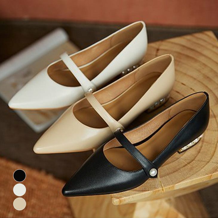 ストラップパンプス ローヒール ポインテッドトゥ ポインテッドトゥパールソールパンプス ストラップパンプス ローヒール パンプス ポインテッドトゥ 無地 シンプル OL キレイめ カジュアル 安定感 ぺたんこ フラット【k3-ws05】【予約販売:15-20日】【送料無料】宅込
