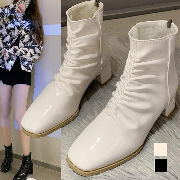 スクエアトゥ ショートブーツ 裏起毛 ギャザー ローヒール スクエアトゥ ショートブーツ 裏起毛 ギャザー ローヒール エナメル マット 楽ちん 美脚 細見え 柔らか お洒落 きれいめ カジュアル ガーリー レディース 春夏 韓国ファッション【k3-yg666】【予約販売:15-20日】【送料無料】宅込