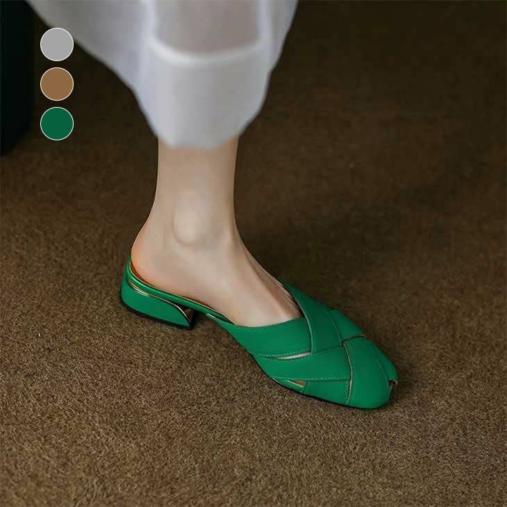 編み込み スクエアトゥ サンダル ぺたんこ ミュール [AMELY by La-gemme]編み込み スクエアトゥ サンダル ぺたんこ ミュール Vカット 歩きやすい フラット ローヒール 太ヒール カジュアル ガーリー シンプル お洒落 レディース 大人 韓国ファッション【k3-zj332】【即納:1-5営業日】【送料無料】60込