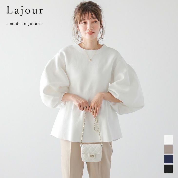 ボリュームスリーブ プルオーバー レディース [Lajour made in Japan]日本製 ボリュームスリーブ ペプラムシルエット プルオーバー ハイゲージニット レディース おすすめ おしゃれ ブラック フリーサイズ 2025春夏新作 【laj-011】【即納:1-5営業日】【送料無料】60込