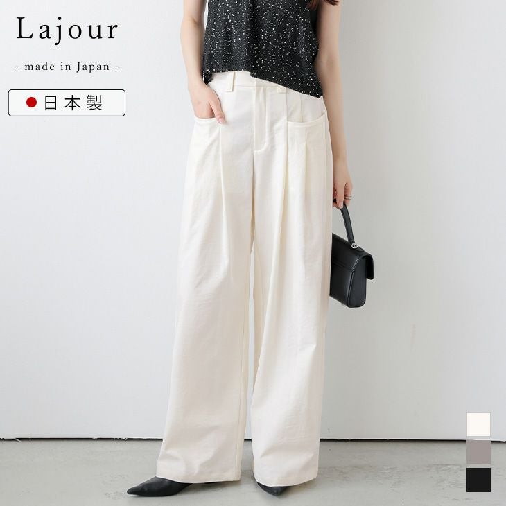 Lajour made in Japan 日本製 【クーポン利用で35%OFF】[Lajour mada in Japan] 日本製 タックワイドパンツ ポケット 美脚 マニッシュ モード オフィス ボトムス レディース おすすめ おしゃれ 2025春夏新作 【laj-bt109】【即納&予約:4月2日入荷予定順次発送】【送料無料】メ込2