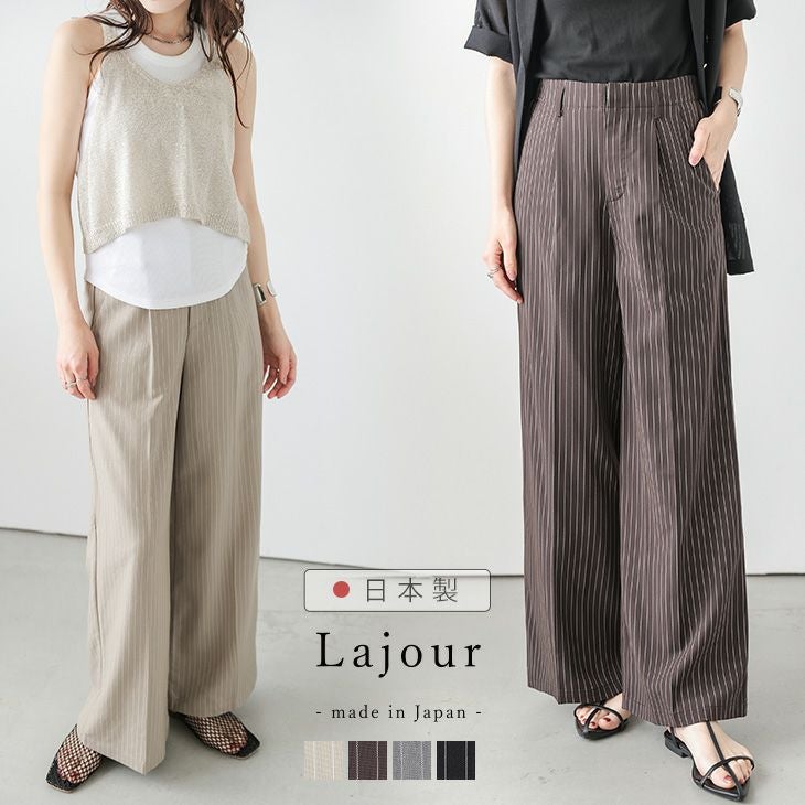 Lajour made in Japan 日本製 【クーポン利用で35%OFF】 [Lajour mada in Japan] 日本製 ピンストライプ 美脚パンツ タック ストレート ワイドパンツ オフィス カジュアル ボトムス レディース おすすめ おしゃれ 2025春夏新作 【laj-bt116】【予約販売:7月17日入荷予定順次発送】【送料無料】メ込2