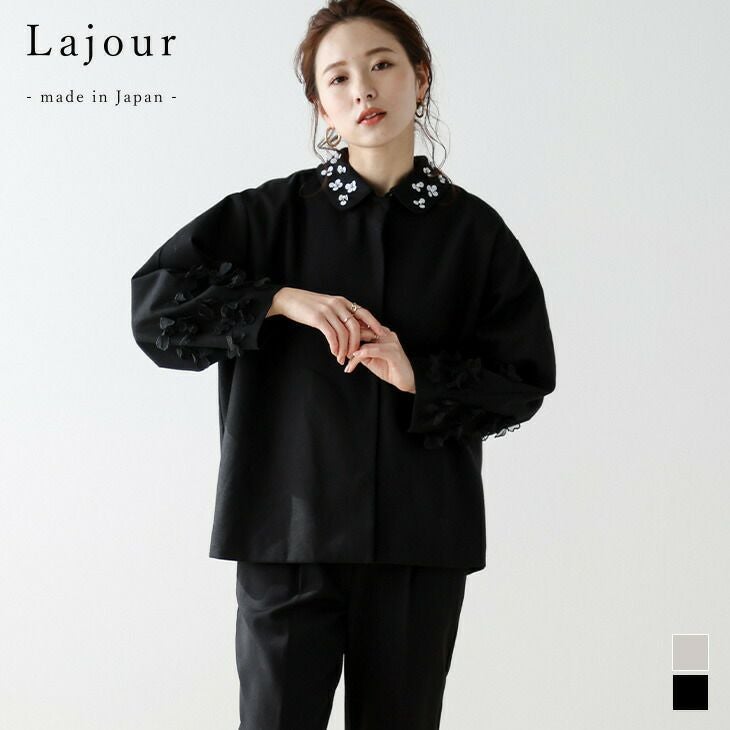 Lajour made in Japan 日本製2wayジャケット 【クーポン利用で35%OFF】 Lajour made in Japan 日本製2wayジャケット フラワー ラウンドカラー パール 上品 華やか オケージョン アウター レディース フリーサイズ ラジュール 2025春夏新作 【laj-ot033】【即納:1-5営業日】【送料無料】60込