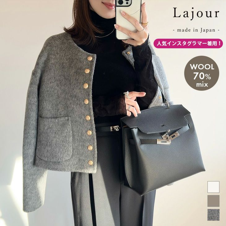 日本製 アウター ショートコート キレイめ ウール混 【クーポン利用で35%OFF】[Lajour mada in Japan] 日本製 アウター ゴールドボタン ウール混 ライトアウター ショートコート ラジュール レディース おすすめ おしゃれ 2025春夏新作【laj-ot085】【即納:1-5営業日】【送料無料】宅込