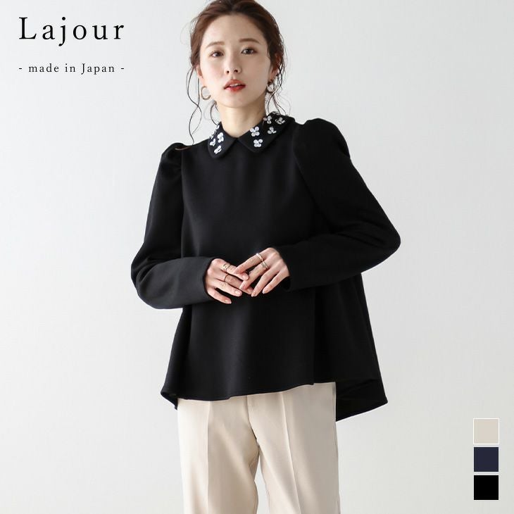Lajour made in Japan 日本製 【春夏半額SALE対象】 [Lajour made in Japan] 日本製 トップス プルオーバー パワーショルダー フラワー ラウンドカラー 2way フェミニン 上品 体型カバー 華奢見せ 着映え レディース 2025春夏新作 【laj-tp028】【即納:1-5営業日】【送料無料】60込