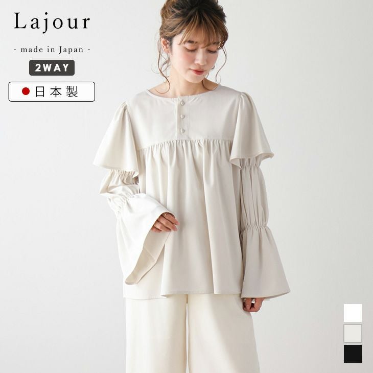 Lajour made in Japan 日本製 [Lajour mada in Japan] 日本製 ブラウス 前後2way フリル ギャザー フレアシルエットフェミニン 長袖 トップス レディース おすすめ おしゃれ フリーサイズ 2025春夏新作 【laj-tp042】【即納:1-5営業日】【送料無料】メ込2