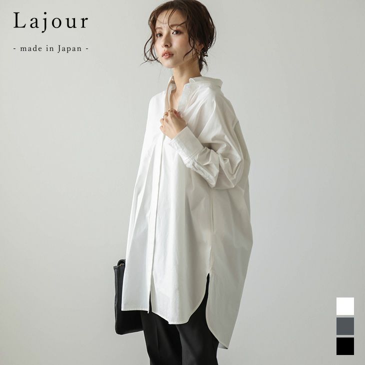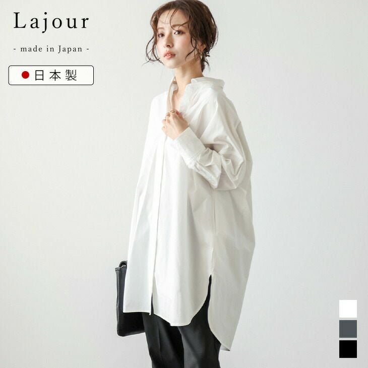 Lajour made in Japan 日本製 【クーポン利用で35%OFF】[Lajour mada in Japan] 日本製 ロングシャツ ルーズ シンプル 高見え レイヤード オフィスカジュアル 長袖 トップス レディース ラジュール おすすめ おしゃれ フリーサイズ 2025春夏新作 【laj-tp061】【即納:1-5営業日】【送料無料】宅込