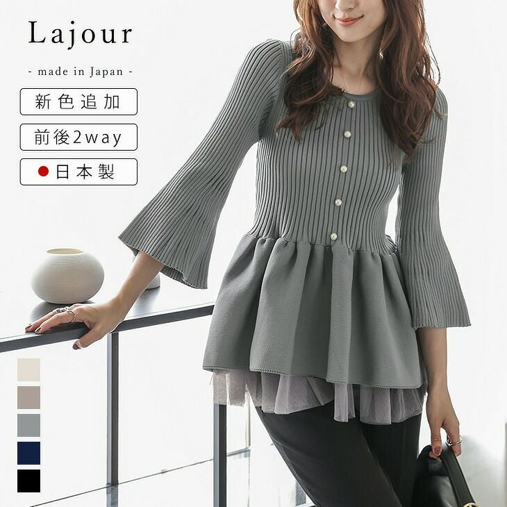日本製 前後2way ペプラム チュール パールボタン 【秋冬半額SALE対象】 日本製 前後2way ペプラム チュール パールボタン パステルカラー フレアスリーブ リブニット スポンジニット レディース おすすめ おしゃれ フリーサイズ メール便 2025春夏新作 【laj25ss-tp084】【即納:1-5営業日】【送料無料】宅込