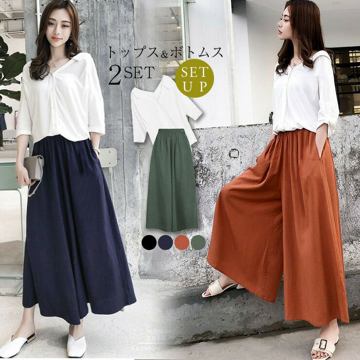 セットアップ ワイドパンツ 白シャツ Vネック レディース 奇跡の再販!セットアップ ワイドパンツ 白シャツ Vネック レディース 7分袖 セットアイテム トップス ハイウエスト ボトムス セット おしゃれ 二点セット メール便 M/L/XL【lgww-ag0102】【送料無料】【即納:1-5営業日】メ込2