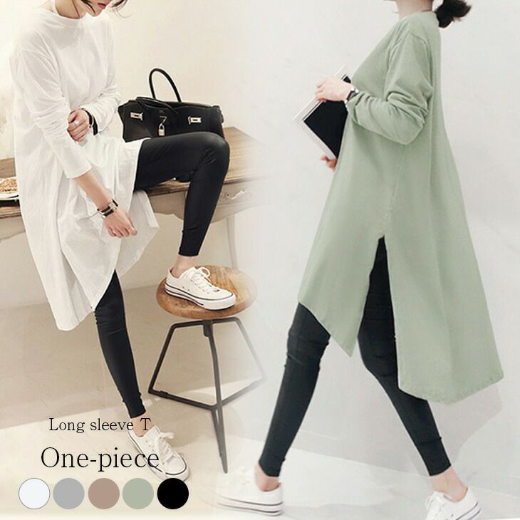 ロングカットソー レディース カットソー トップス スリットライン 斜めロングTシャツ メール便 2025春夏 自宅 部屋着 ルームウェア【lgww-ah0507】【即納:1-5営業日】【送料無料】メ込2