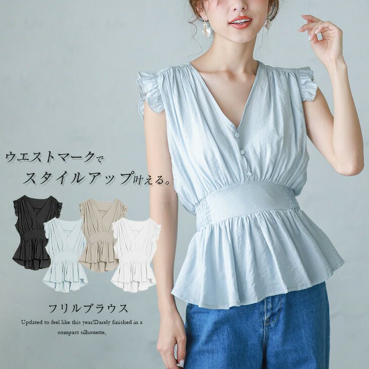 フリル ブラウス レディース トップス ノースリーブ フリル ブラウス レディース トップス ノースリーブ ペプラム ウエストマーク ギャザー シャツ Vネック 上品 仕事 オフィス おしゃれ 可愛い ブラック ホワイト メール便 2025秋新作 M/L 【lgww-at2200】【予約販売:7月28日入荷予定順次発送】【送料無料】メ込2