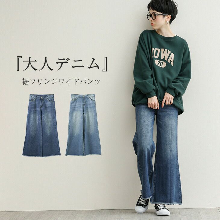 【最終入荷!ラストチャンス!】ワイドパンツ デニム フリンジ レディース ワイド ワイドデニム パンツ ジーンズ ボトムス デニムパンツ 裾フリンジ おしゃれ カジュアル メール便 2025秋新作 M/L 【lgww-at2592】【即納:1-5営業日】【送料無料】メ込2