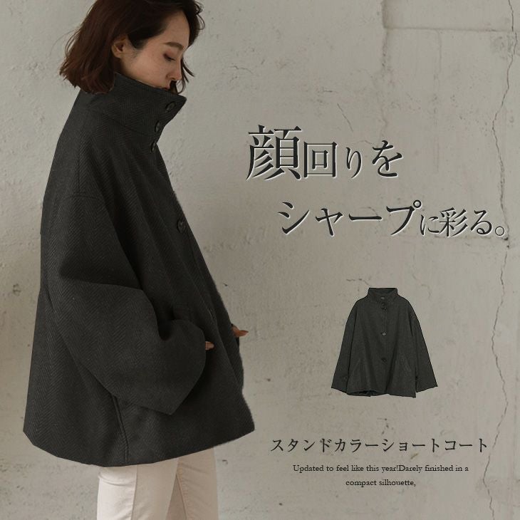 スタンドカラー ショートコート コート レディース スタンドカラー ショートコート コート レディース アウター ドロップショルダー ゆったり ビッグカラー カジュアル シンプル おしゃれ ブラック 2025秋新作 M/L 【lgww-at2755】【即納:1-5営業日】【送料無料】宅込