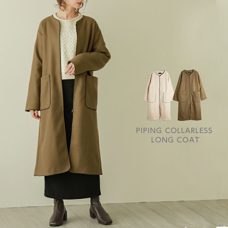 ロングコート アウター パイピング ノーカラー レディース ロングコート アウター パイピング ノーカラー レディース 裏地付き おすすめ おしゃれ ブラック 2025秋新作 【lgww-at2897】【即納:1-5営業日】【送料無料】宅込