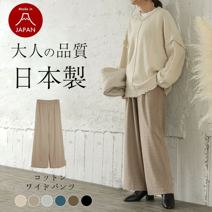 日本製 コットン ワイドパンツ ワイドパンツ レディース 楽ちん 綿 きれいめ ウエストゴム イージーパンツ 仕事 オフィス 楽ちん ボトムス ブラック 2025秋新作 M/L 【lgww-at2937】【即納:1-5営業日】【送料無料】ヤ込