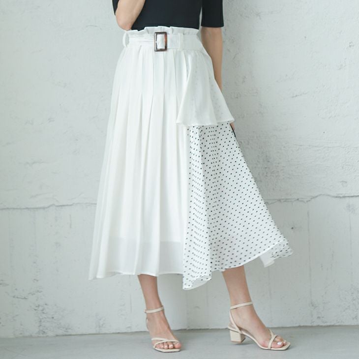 サイドドット アシンメトリー スカート ロング レディース サイドドット アシンメトリー スカート ロング レディース フレア 切替 ロングスカート ドット ボトムス 楽ちん おしゃれ 可愛い 個性的 ブラック ホワイト メール便 2025秋新作 M/L 【lgww-at3113】【即納:1-5営業日】【送料無料】メ込2