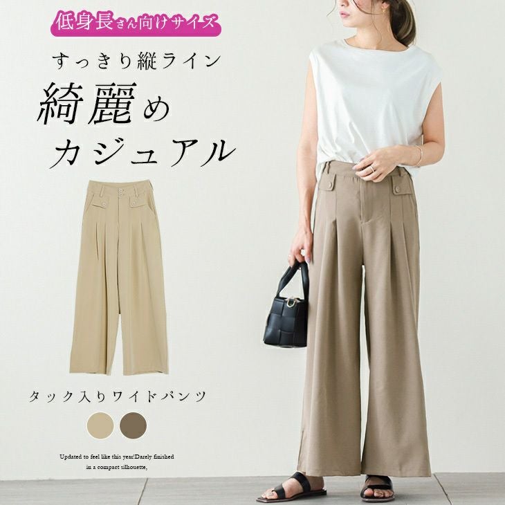 【低身長さん向けサイズ】 タック ワイドパンツ レディース 【低身長さん向けサイズ】 タック ワイドパンツ レディース 楽ちん ボトムス ゆったり すっきり 体型カバー ポケット きれいめ カジュアル 仕事 オフィス 通勤 メール便 2025秋新作 S/M/L 【lgww-at3272】【即納:1-5営業日】メ別2