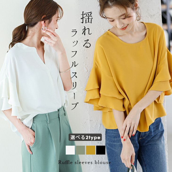 ラッフルスリーブ ブラウス レディース フリル プルオーバー ラッフルスリーブ ブラウス レディース フリル プルオーバー 5分袖 トップス シャツ きれいめ 仕事 オフィス 大人 おしゃれ ブラック メール便 2025春夏 【lgww-at3323】【即納:1-5営業日】【送料無料】ユ込2