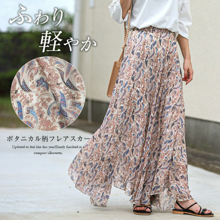 フレアスカート スカート ロング レディース マキシ フレアスカート スカート ロング レディース マキシ ボタニカル 花 ボトムス 大人 シフォン 楽ちん おしゃれ 可愛い ホワイト メール便 2025秋新作 M/L 【lgww-at3365】【即納:1-5営業日】【送料無料】メ込2