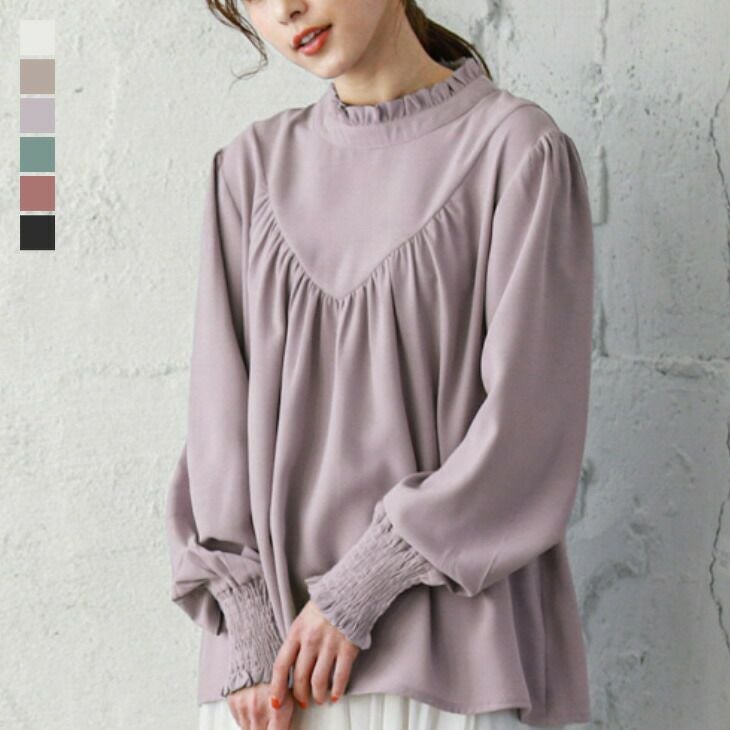 フリルスタンドカラー ブラウス レディース ギャザー 長袖 フリルスタンドカラー ブラウス レディース フロントギャザー 長袖 トップス 立ち襟 きれいめ オフィス 大人 カジュアル 上品 シャツ おしゃれ 可愛い メール便 2025秋新作 M/L 【lgww-at3382】【即納:1-5営業日】【送料無料】メ込2