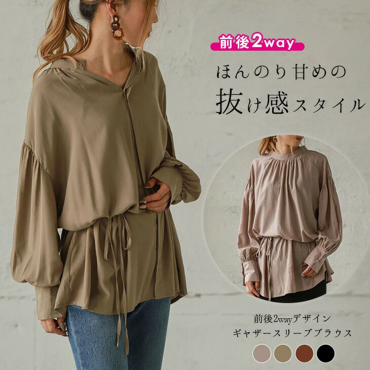 2way ギャザースリーブ ブラウス レディース 長袖 【最終入荷!ラストチャンス!】2way ギャザースリーブ ブラウス レディース 長袖 ギャザー トップス シャツ スタンドカラー ボリューム袖 大人 きれいめ おしゃれ トレンド ブラック メール便 2025秋新作 フリー 【lgww-at3398】【即納:1-5営業日】【送料無料】メ込2