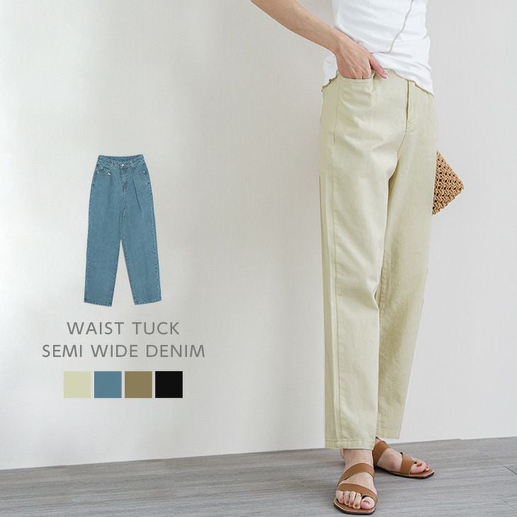ウエストタック セミワイドデニム デニム パンツ レディース ウエストタック セミワイドデニム デニムパンツ レディース デニム ワイドパンツ ゆったり ロングパンツ ハイウエスト ボトムス パンツ カジュアル ブラック メール便 2025秋新作 M/L 【lgww-at3611】【即納:1-5営業日】【送料無料】メ込2