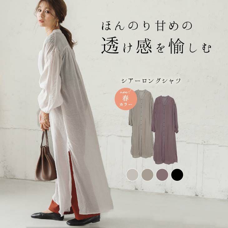 シアー シャツワンピース ワンピース ロングシャツ シアー シャツワンピース ワンピース ロングシャツ レディース 長袖 ロング シャツ 羽織 透け バルーン袖 バックギャザー ブラウス おしゃれ トレンド ブラック メール便 2025秋新作 M/L 【lgww-at3664】【即納:1-5営業日】【送料無料】メ込2