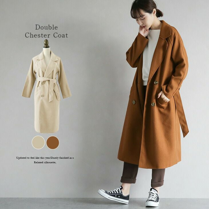 チェスターコート レディース ロング チェスター ダブル チェスターコート レディース ロング チェスター ダブル コート オーバーサイズ ゆったり ベルト付き アウター 大人 無地 定番 2025秋新作 M/L 【lgww-at3687】【即納:1-5営業日】【送料無料】メ込