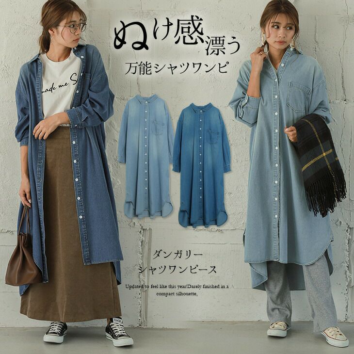 ダンガリー シャツワンピース ワンピース ロング 【奇跡の再販!】ダンガリー シャツワンピース ワンピース ロング シャツワンピ レディース ロングシャツ 長袖 羽織 マキシ丈 可愛い 2025秋新作 フリー 【lgww-at3736】【即納:1-5営業日】【送料無料】宅込
