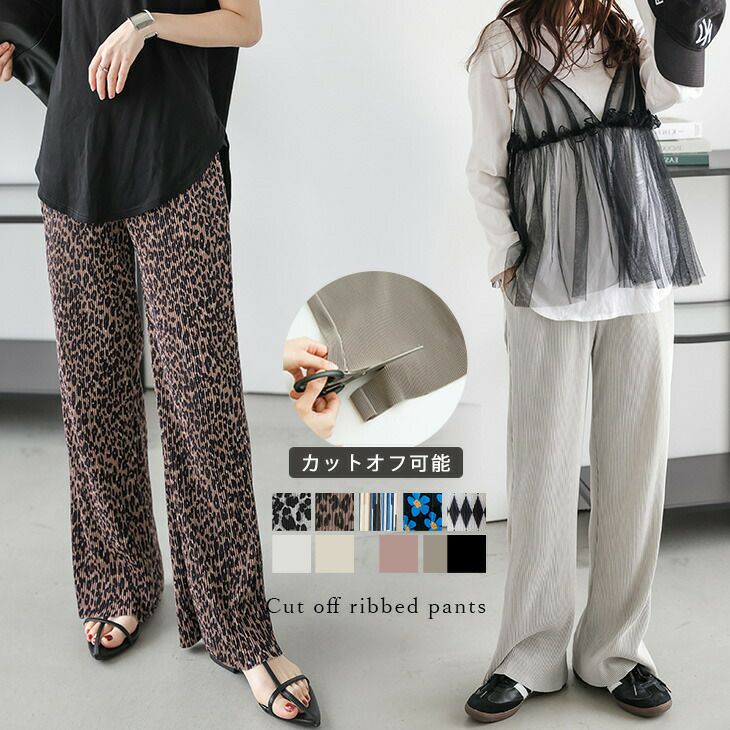 カットオフ リブパンツ レディース プリーツ ロング ナチュラルカラー 【春夏半額SALE対象】 セルフカット リブパンツ レディース カットオフ プリーツ ロング ワイド ナチュラルカラー リラックスパンツ ゆったり おうち ウエストゴム ルームウエア 大人 きれいめ ブラック メール便 2025春夏【lgww-at3780】【即納:1-5営業日】【送料無料】ユ込3