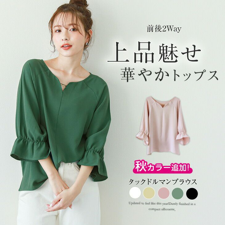 ドルマン ブラウス レディース 5分袖 7分袖 秋カラー追加! ドルマン ブラウス レディース 5分袖 7分袖 前後2way トップス Vネック ボリューム袖 シャツ 上品 きれいめ 大人 仕事 オフィス 可愛い ブラック ホワイト メール便 2025秋新作 フリー 【lgww-at3816】【即納:1-5営業日】【送料無料】メ込2