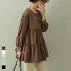 ティアード ギャザー ブラウス レディース 長袖 ティアード ギャザー ブラウス レディース 長袖 トップス Aライン チュニック フリル クルーネック 体型カバー 無地 大人 メール便 2025秋新作【lgww-at4068】【即納:1-5営業日】【送料無料】メ込2
