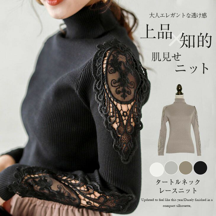 タートルネック レースニット リブニット ニット セーター 【使用不可】タートルネック レースニット リブニット ニット セーター レディース トップス ハイネック 刺繍 透け感 シースルー 上品 きれいめ エレガント 大人可愛い デート ブラック ホワイト メール便 2025秋新作 フリー 【lgww-at4154】【即納:1-5営業日】【送料無料】メ込2