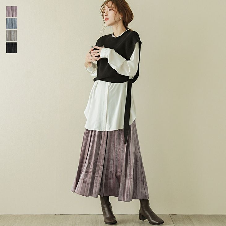 ベロア プリーツスカート ロング レディース プリーツ ベロア プリーツスカート ロング レディース プリーツ ロングスカート マキシ丈 ウエストゴム Aライン フレアスカート 上品 大人 きれいめ デート ボトムス スカート ブラック 2025秋新作 フリー 【lgww-at4156】【即納:1-5営業日】ヤ込