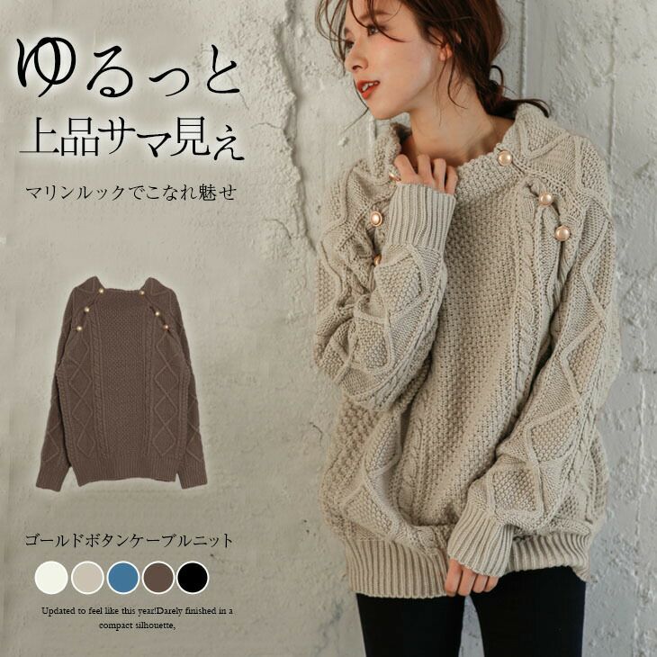 ゴールドボタン ケーブル編みニット ニット セーター 長袖 ゴールドボタン ケーブル編みニット ニット セーター 長袖 レディース プルオーバー トップス ラウンドネック ざっくりニット ゆったり ボタン ブラック ホワイト 2025秋新作 フリー 【lgww-at4283】【即納:1-5営業日】【送料無料】宅込