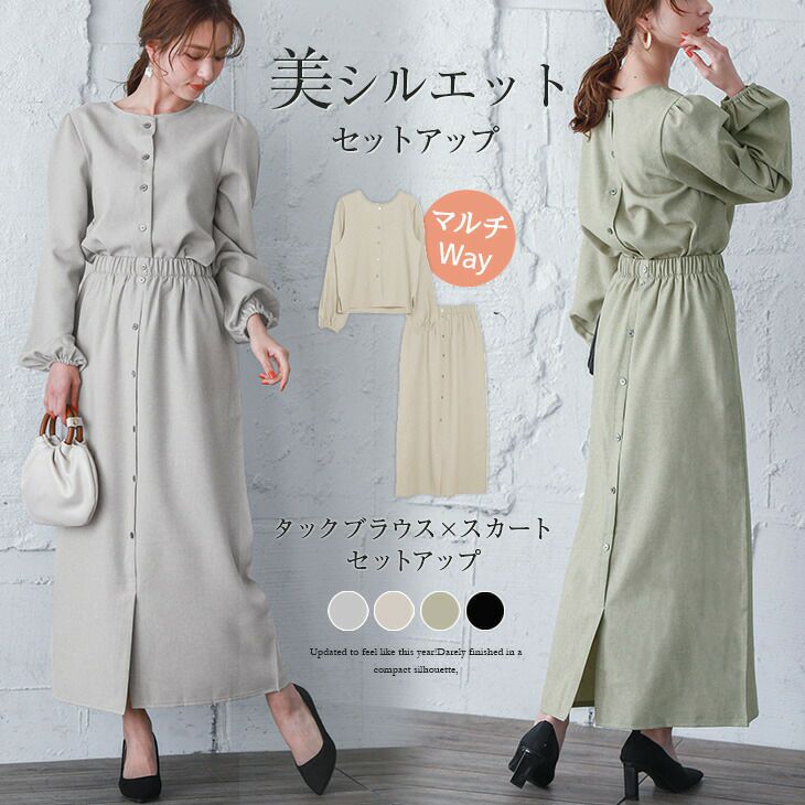 マルチway セットアップ スカート レディース ブラウス 【最終入荷!ラストチャンス!】マルチway セットアップ スカート レディース ブラウス Aライン ボタン 上下セット きれいめ 仕事 オフィス 通勤 大人 ウエストゴム トップス ボトムス おしゃれ ブラック 2025秋新作 M/L 【lgww-at4284】【即納:1-5営業日】【送料無料】メ込2