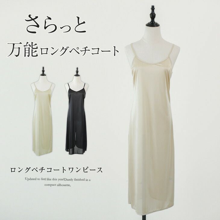 ペチコート ワンピース 下着 レディース ロング ペチコート ワンピース 下着 レディース ロング インナー スリット 透け防止 肩ひも ランジェリー 調節可能 静電気防止 キャミソール おしゃれ 可愛い キレイ ブラック メール便 2025秋新作 M/L 【lgww-at4407】【即納:1-5営業日】【送料無料】メ込2