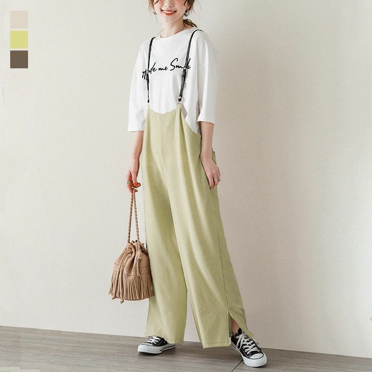 サスペンダー付き サロペット パンツ レディース サスペンダー付き サロペット パンツ レディース オールインワン 大人 楽ちん 細ストラップ ワイドパンツ スリット トップス ボトムス おしゃれ 可愛い ブラック メール便 2025秋新作 フリー 【lgww-at4416】【即納:1-5営業日】【送料無料】メ込2