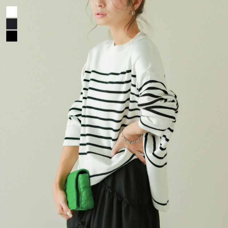 ニット ボーダー セーター 長袖 クルーネック ニット ボーダー セーター 長袖 クルーネック ドロップショルダー レディース トップス おしゃれ 可愛い ブラック ホワイト メール便 2025秋新作 フリー 【lgww-at4462】【即納:1-5営業日】メ込4