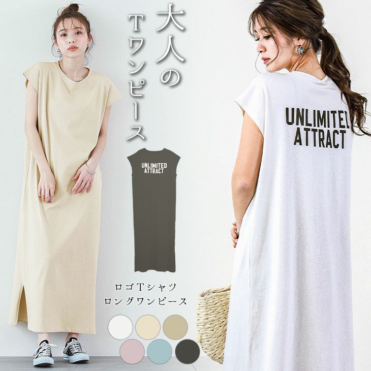 バックロゴ Tシャツワンピース レディース ロゴT バックロゴ Tシャツワンピース レディース ロゴT ロングワンピース サイドスリット マキシ丈 ゆったり 部屋着 ルームウエア コットン 可愛い 低身長向け 小柄 メール便 2025春夏新作 C/フリー 【lgww-at4565】【即納:1-5営業日】【送料無料】メ込2
