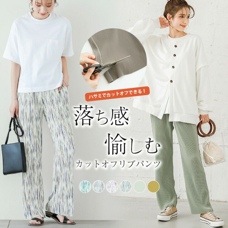 セルフカット リブパンツ プリーツ ロング ワイド セルフカット リブパンツ プリーツ ロング ワイド パンツ リラックスパンツ ゆったり カラーパンツ ウエストゴム ルームウエア カットオフ 2025秋新作 M/MT/L 【lgww-at4791】【即納:1-5営業日】メ別2