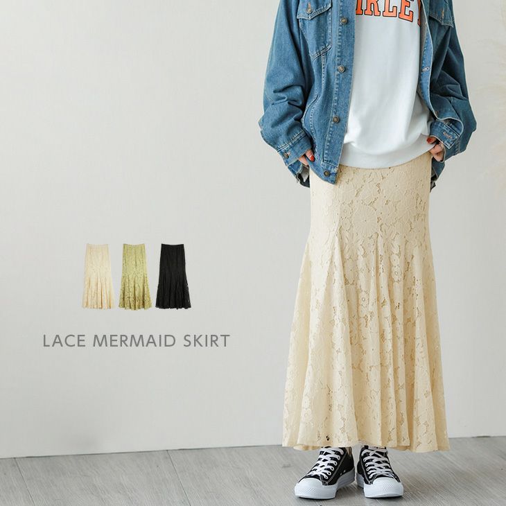 マーメイドスカート レース ロング丈 ボトムス マーメイドスカート レース ロング丈 ボトムス レディース ウエストゴム おすすめ おしゃれ ブラック メール便 2025春夏新作 【lgww-at4925】【即納:1-5営業日】【送料無料】メ込1