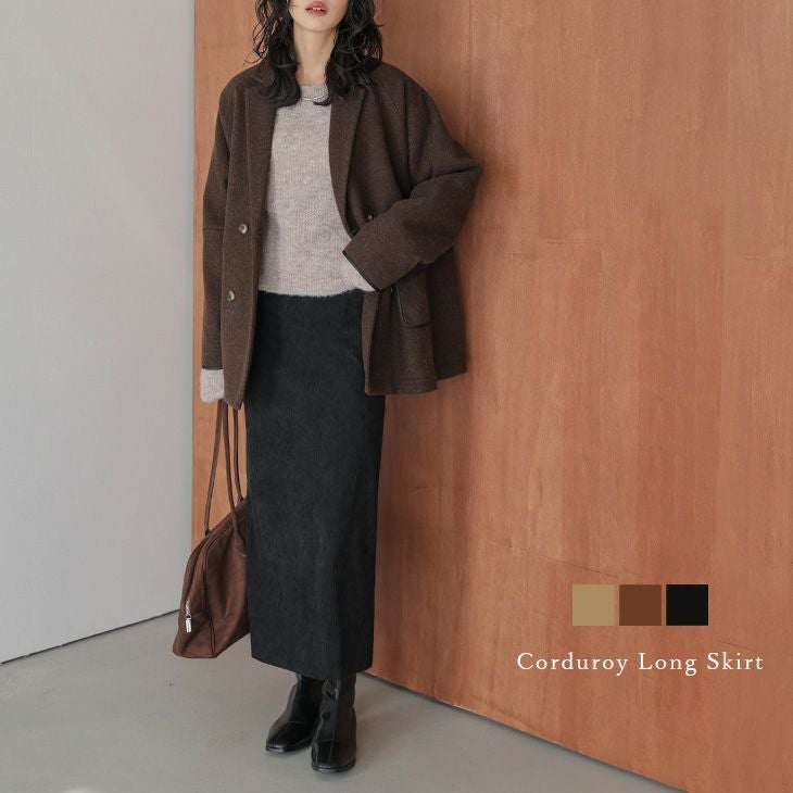 ロングスカート コーデュロイ レディース ボトムス 【秋冬半額SALE対象】 ロングスカート コーデュロイ レディース ボトムス タイトシルエット スリット 楽ちん おしゃれ 可愛い ブラック メール便 2025秋新作 M/L 【lgww-at4928】【即納:1-5営業日】メ込2