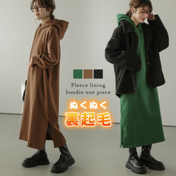 裏起毛 フーディー ワンピース 長袖 レディース 【秋冬半額SALE対象】 裏起毛 フーディー ワンピース 長袖 レディース ロングワンピ あったか ゆったり 暖か スウェット スリット ポケット 楽ちん フード付 カジュアル 部屋着 フリーサイズ 2025秋新作 【lgww-at4987】【即納:1-5営業日】【送料無料】宅込