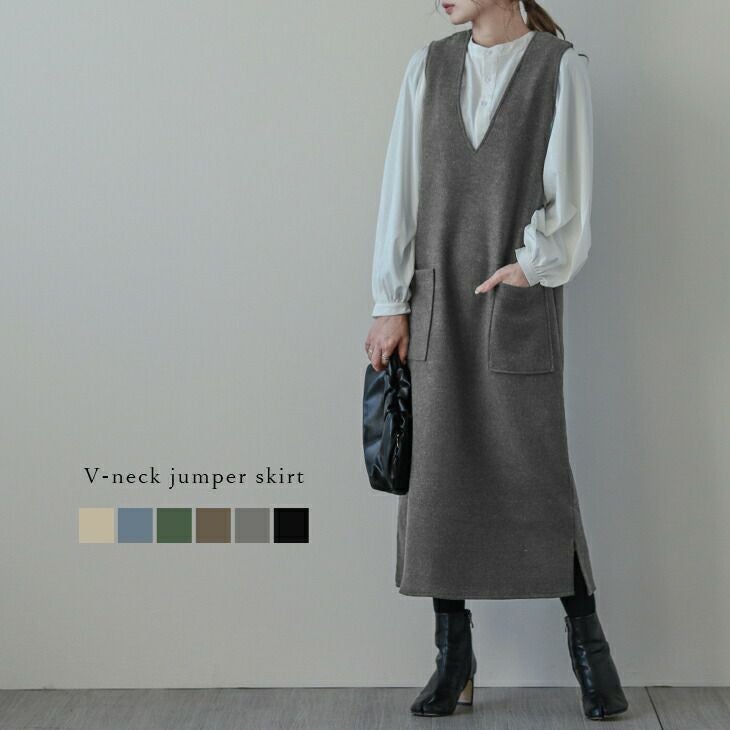 Vネックジャンパースカート ロング ワンピース レディース Vネックジャンパースカート ロング ワンピース ノースリーブ レディース サイドスリット 深Vネック ジャンスカ 上品 きれいめ ポケット ママ 大人 体型カバー ブラック 2025秋新作 【lgww-at5011】【即納:1-5営業日】【送料無料】メ込3