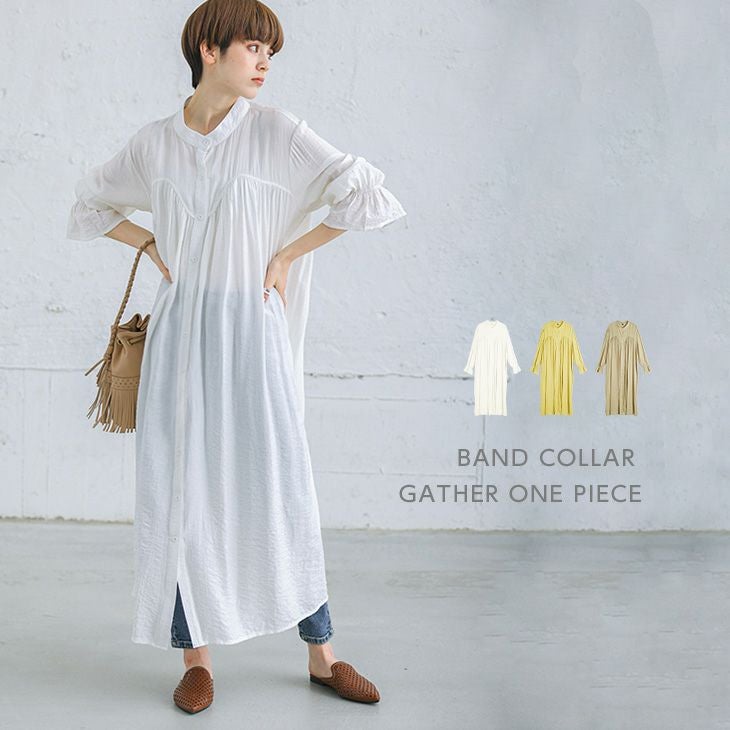 ロング ワンピース 長袖 レディース おすすめ バンドカラー ギャザー ロング ワンピース 長袖 羽織り シアー 透け感 きれいめ カジュアル レディース おすすめ おしゃれ フリーサイズ メール便 2025秋新作 【lgww-at5016】【即納:1-5営業日】【送料無料】メ込2